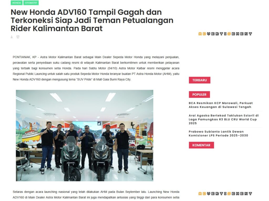 New Honda ADV160 Tampil Gagah dan Terkoneksi Siap Jadi Teman Petualangan Rider Kalimantan Barat