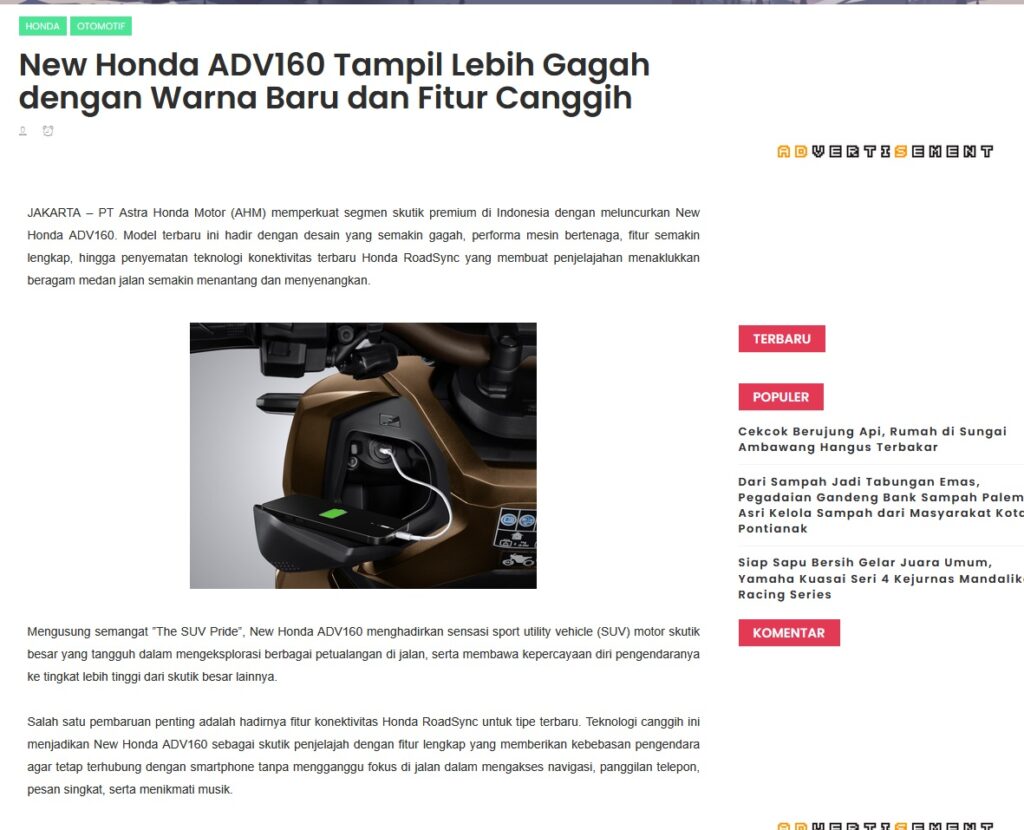 New Honda ADV160 Tampil Lebih Gagah dengan Warna Baru dan Fitur Canggih by Muhammad Arif 28 September 2025 in Silahkan kunjungi https://www.kapuaspost.web.id/2025/09/new-honda-adv160-tampil-lebih-gagah.html. Tags: astra Astra Motor kalbar Astra Motor Pontianak astramotor honda kalbar pontianak sepeda motor You Might Like Regional Public Launching New ADV160 The SUV Pride Grand Launching New PCX 160 Truly Exceptional! Tetap hati-hati ya bro sist berkendara saat hujan.