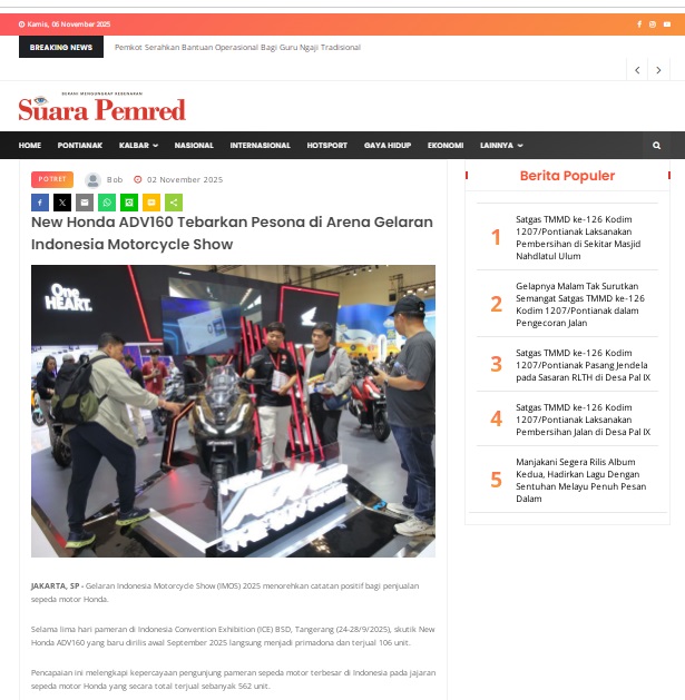 New Honda ADV160 Tebarkan Pesona di Arena Gelaran Indonesia Motorcycle Show by masmul 2 November 2025 in Silahkan kunjungi https://www.suarapemredkalbar.com/read/potret/02112025/new-honda-adv160-tebarkan-pesona-di-arena-gelaran-indonesia-motorcycle-show. You Might Like Regional Public Launching New ADV160 The SUV Pride Grand Launching New PCX 160 Truly Exceptional! Tetap hati-hati ya bro sist berkendara saat hujan.