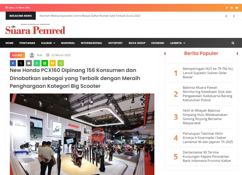 New Honda PCX160 Dipinang 156 Konsumen dan Dinobatkan sebagai yang Terbaik dengan Meraih Penghargaan Kategori Big Scooter by masmul 22 Maret 2025 in Silahkan kunjungi https://www.suarapemredkalbar.com/read/potret/22032025/new-honda-pcx160-dipinang-156-konsumen-dan-dinobatkan-sebagai-yang-terbaik-dengan-meraih-penghargaan-kategori-big-scooter. You Might Like Regional Public Launching New ADV160 The SUV Pride Grand Launching New PCX 160 Truly Exceptional! Tetap hati-hati ya bro sist berkendara saat hujan.