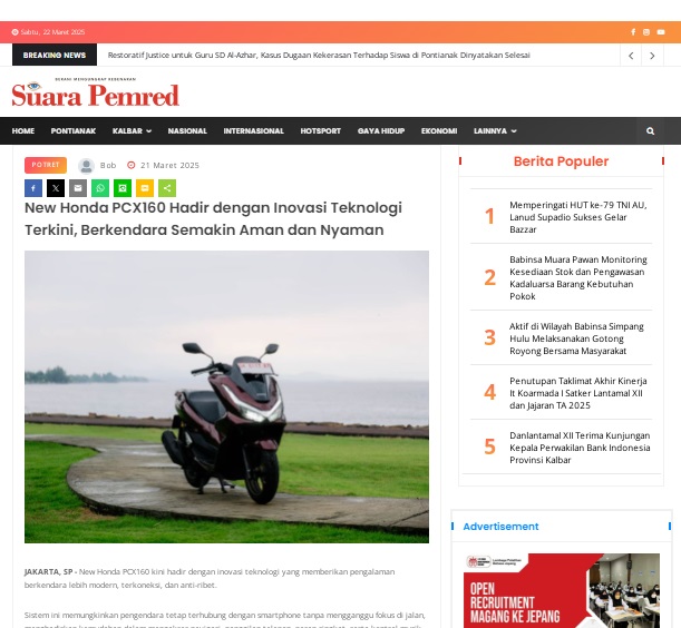 New Honda PCX160 Hadir dengan Inovasi Teknologi Terkini, Berkendara Semakin Aman dan Nyaman by masmul 21 Maret 2025 in Silahkan kunjungi https://www.suarapemredkalbar.com/read/potret/21032025/new-honda-pcx160-hadir-dengan-inovasi-teknologi-terkini-berkendara-semakin-aman-dan-nyaman. You Might Like Regional Public Launching New ADV160 The SUV Pride Grand Launching New PCX 160 Truly Exceptional! Tetap hati-hati ya bro sist berkendara saat hujan.