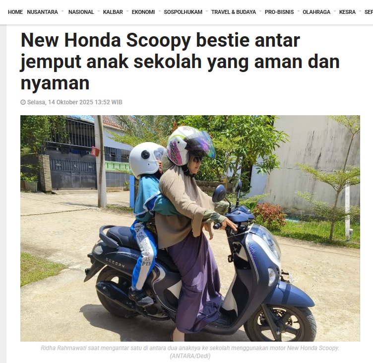 New Honda Scoopy bestie antar jemput anak sekolah yang aman dan nyaman by Dedi 14 Oktober 2025 in Silahkan kunjungi https://kalbar.antaranews.com/berita/669717/new-honda-scoopy-bestie-antar-jemput-anak-sekolah-yang-aman-dan-nyaman. You Might Like Regional Public Launching New ADV160 The SUV Pride Grand Launching New PCX 160 Truly Exceptional! Tetap hati-hati ya bro sist berkendara saat hujan.