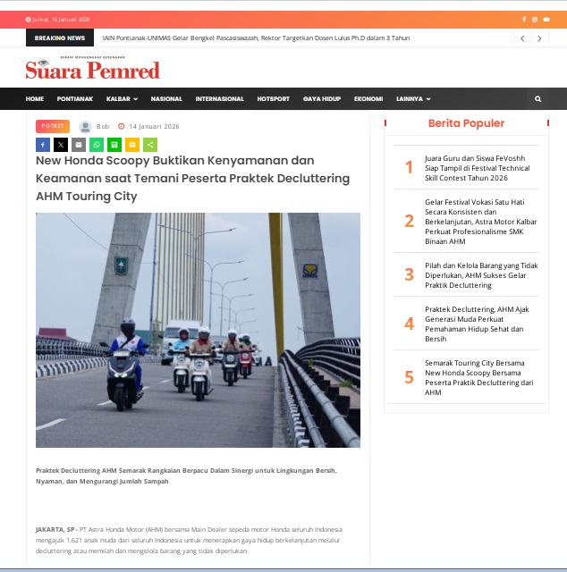 New Honda Scoopy Buktikan Kenyamanan dan Keamanan saat Temani Peserta Praktek Decluttering AHM Touring City by masmul 14 Januari 2026 in Silahkan kunjungi https://www.suarapemredkalbar.com/read/potret/14012026/new-honda-scoopy-buktikan-kenyamanan-dan-keamanan-saat-temani-peserta-praktek-decluttering-ahm-touring-city. You Might Like Regional Public Launching New ADV160 The SUV Pride Grand Launching New PCX 160 Truly Exceptional! Tetap hati-hati ya bro sist berkendara saat hujan.