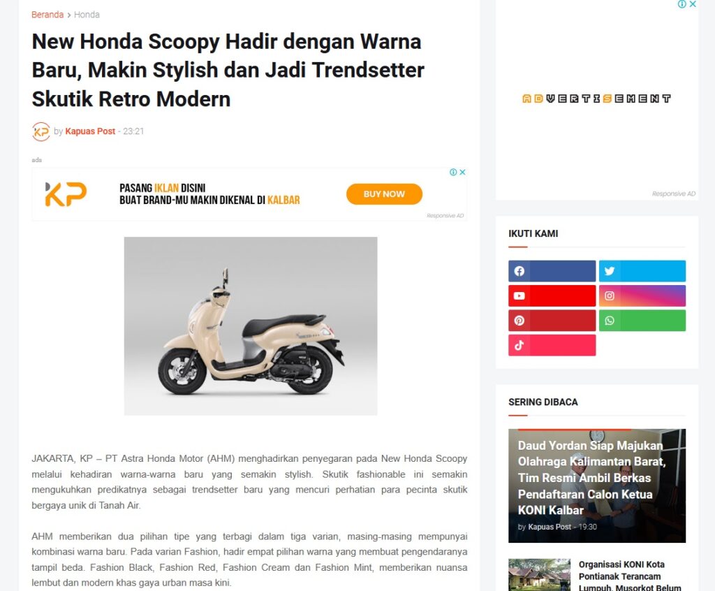 New Honda Scoopy Hadir dengan Warna Baru, Makin Stylish dan Jadi Trendsetter Skutik Retro Modern by Muhammad Arif 21 November 2025 in Silahkan kunjungi https://www.kapuaspost.web.id/2025/11/new-honda-scoopy-hadir-dengan-warna_26.html. Tags: astra Astra Motor kalbar Astra Motor Pontianak astramotor honda kalbar pontianak sepeda motor You Might Like Regional Public Launching New ADV160 The SUV Pride Grand Launching New PCX 160 Truly Exceptional! Tetap hati-hati ya bro sist berkendara saat hujan.