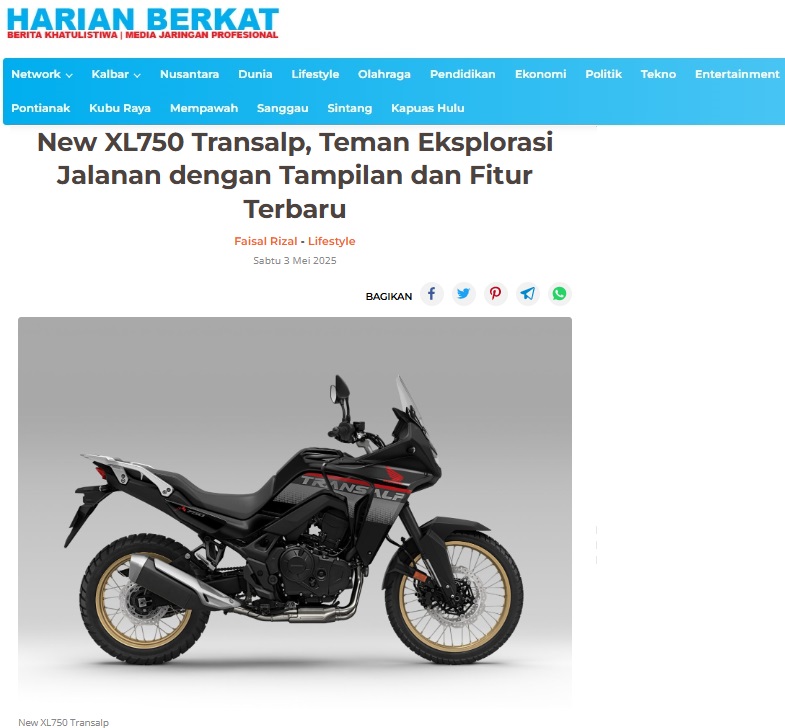 New XL750 Transalp, Teman Eksplorasi Jalanan dengan Tampilan dan Fitur Terbaru by Dodi Dodi 3 Mei 2025 in Silahkan kunjungi https://harianberkat.com/2025/05/03/new-xl750-transalp-teman-eksplorasi-jalanan-dengan-tampilan-dan-fitur-terbaru/. Tags: Asmo Kalbar Astra Motor kalbar Honda Kalbar Motor Honda New XL750 Transalp PT AHM Teman Eksplorasi You Might Like Regional Public Launching New ADV160 The SUV Pride Grand Launching New PCX 160 Truly Exceptional! Tetap hati-hati ya bro sist berkendara saat hujan.