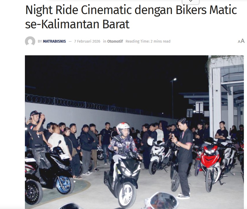 Night Ride Cinematic dengan Bikers Matic se-Kalimantan Barat by Sri Yuliantiningsih 7 Februari 2026 in Silahkan kunjungi https://matrabisnis.id/2026/02/07/night-ride-cinematic-dengan-bikers-matic-se-kalimantan-barat/. You Might Like Regional Public Launching New ADV160 The SUV Pride Grand Launching New PCX 160 Truly Exceptional! Tetap hati-hati ya bro sist berkendara saat hujan.