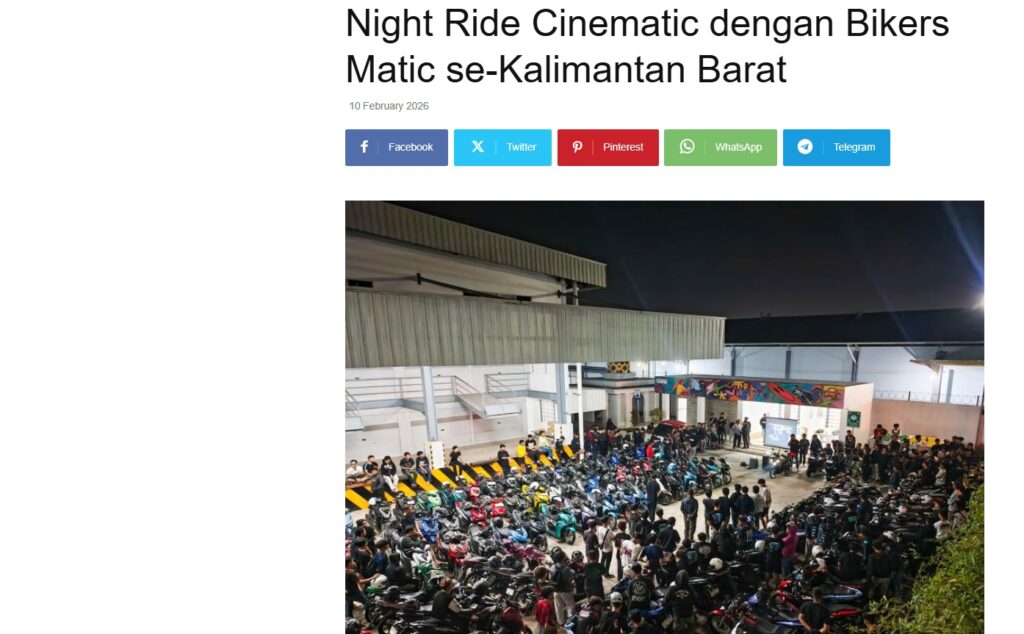 Night Ride Cinematic dengan Bikers Matic se-Kalimantan Barat by Nova Sari 10 Februari 2026 in Silahkan kunjungi https://equator.co.id/night-ride-cinematic-dengan-bikers-matic-se-kalimantan-barat/. You Might Like Regional Public Launching New ADV160 The SUV Pride Grand Launching New PCX 160 Truly Exceptional! Tetap hati-hati ya bro sist berkendara saat hujan.