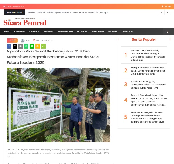 Nyalakan Aksi Sosial Berkelanjutan: 259 Tim Mahasiswa Bergerak Bersama Astra Honda SDGs Future Leaders 2025 by masmul 6 Januari 2026 in Silahkan kunjungi https://www.suarapemredkalbar.com/read/potret/06012026/nyalakan-aksi-sosial-berkelanjutan-259-tim-mahasiswa-bergerak-bersama-astra-honda-sdgs-future-leaders-2025-1. You Might Like Regional Public Launching New ADV160 The SUV Pride Grand Launching New PCX 160 Truly Exceptional! Tetap hati-hati ya bro sist berkendara saat hujan.