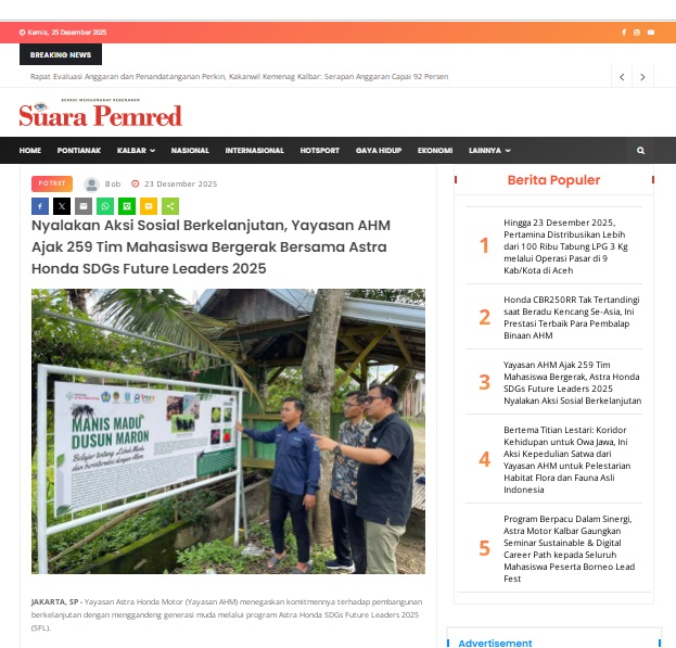 Nyalakan Aksi Sosial Berkelanjutan, Yayasan AHM Ajak 259 Tim Mahasiswa Bergerak Bersama Astra Honda SDGs Future Leaders 2025 by masmul 23 Desember 2025 in Silahkan kunjungi https://www.suarapemredkalbar.com/read/potret/23122025/nyalakan-aksi-sosial-berkelanjutan-yayasan-ahm-ajak-259-tim-mahasiswa-bergerak-bersama-astra-honda-sdgs-future-leaders-2025-1. You Might Like Regional Public Launching New ADV160 The SUV Pride Grand Launching New PCX 160 Truly Exceptional! Tetap hati-hati ya bro sist berkendara saat hujan.