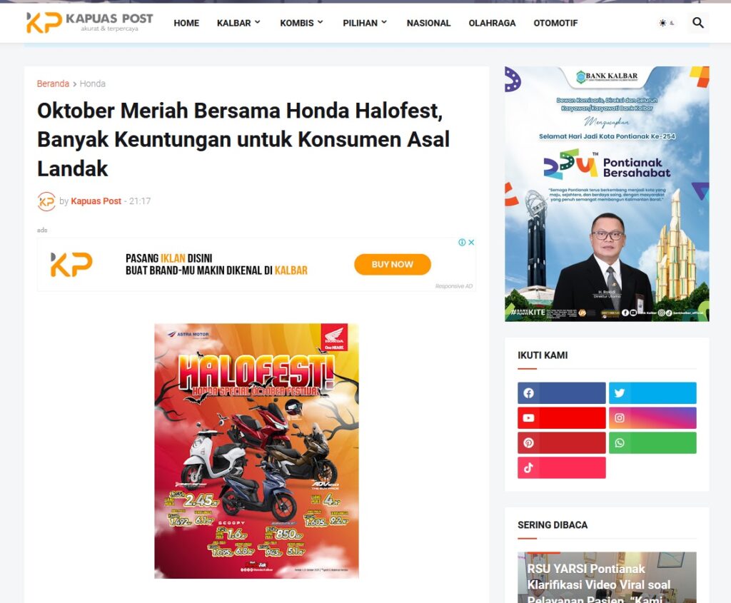Oktober Meriah Bersama Honda Halofest, Banyak Keuntungan untuk Konsumen Asal Landak by Muhammad Arif 22 Oktober 2025 in Silahkan kunjungi https://www.kapuaspost.web.id/2025/10/oktober-meriah-bersama-honda-halofest.html. Tags: astra Astra Motor kalbar Astra Motor Pontianak astramotor honda kalbar pontianak sepeda motor You Might Like Regional Public Launching New ADV160 The SUV Pride Grand Launching New PCX 160 Truly Exceptional! Tetap hati-hati ya bro sist berkendara saat hujan.