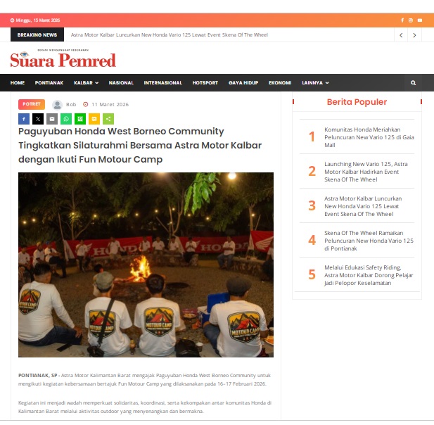 Paguyuban Honda West Borneo Community Tingkatkan Silaturahmi Bersama Astra Motor Kalbar dengan Ikuti Fun Motour Camp by masmul 11 Maret 2026 in Silahkan kunjungi https://www.suarapemredkalbar.com/read/potret/11032026/paguyuban-honda-west-borneo-community-tingkatkan-silaturahmi-bersama-astra-motor-kalbar-dengan-ikuti-fun-motour-camp. You Might Like Regional Public Launching New ADV160 The SUV Pride Grand Launching New PCX 160 Truly Exceptional! Tetap hati-hati ya bro sist berkendara saat hujan.