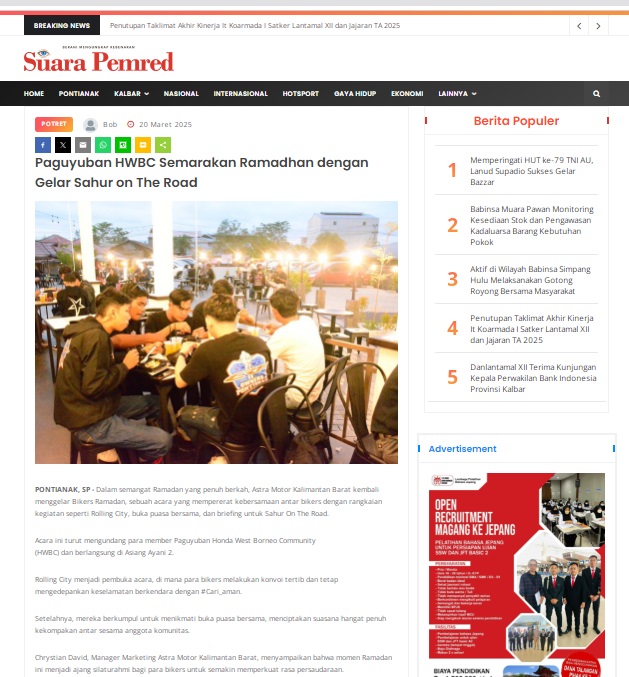 Paguyuban HWBC Semarakan Ramadhan dengan Gelar Sahur on The Road by masmul 20 Maret 2025 in Silahkan kunjungi https://www.suarapemredkalbar.com/read/potret/20032025/paguyuban-hwbc-semarakan-ramadhan-dengan-gelar-sahur-on-the-road. You Might Like Regional Public Launching New ADV160 The SUV Pride Grand Launching New PCX 160 Truly Exceptional! Tetap hati-hati ya bro sist berkendara saat hujan.