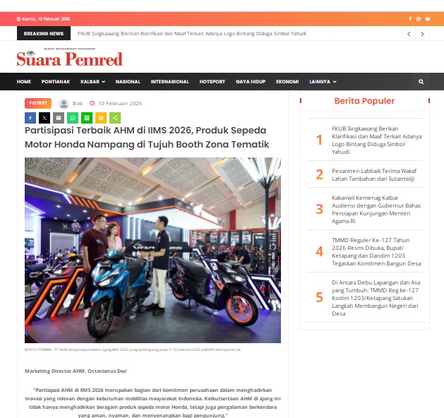 Partisipasi Terbaik AHM di IIMS 2026, Produk Sepeda Motor Honda Nampang di Tujuh Booth Zona Tematik by masmul 10 Februari 2026 in Silahkan kunjungi https://www.suarapemredkalbar.com/read/potret/10022026/partisipasi-terbaik-ahm-di-iims-2026-produk-sepeda-motor-honda-nampang-di-tujuh-booth-zona-tematik. You Might Like Regional Public Launching New ADV160 The SUV Pride Grand Launching New PCX 160 Truly Exceptional! Tetap hati-hati ya bro sist berkendara saat hujan.