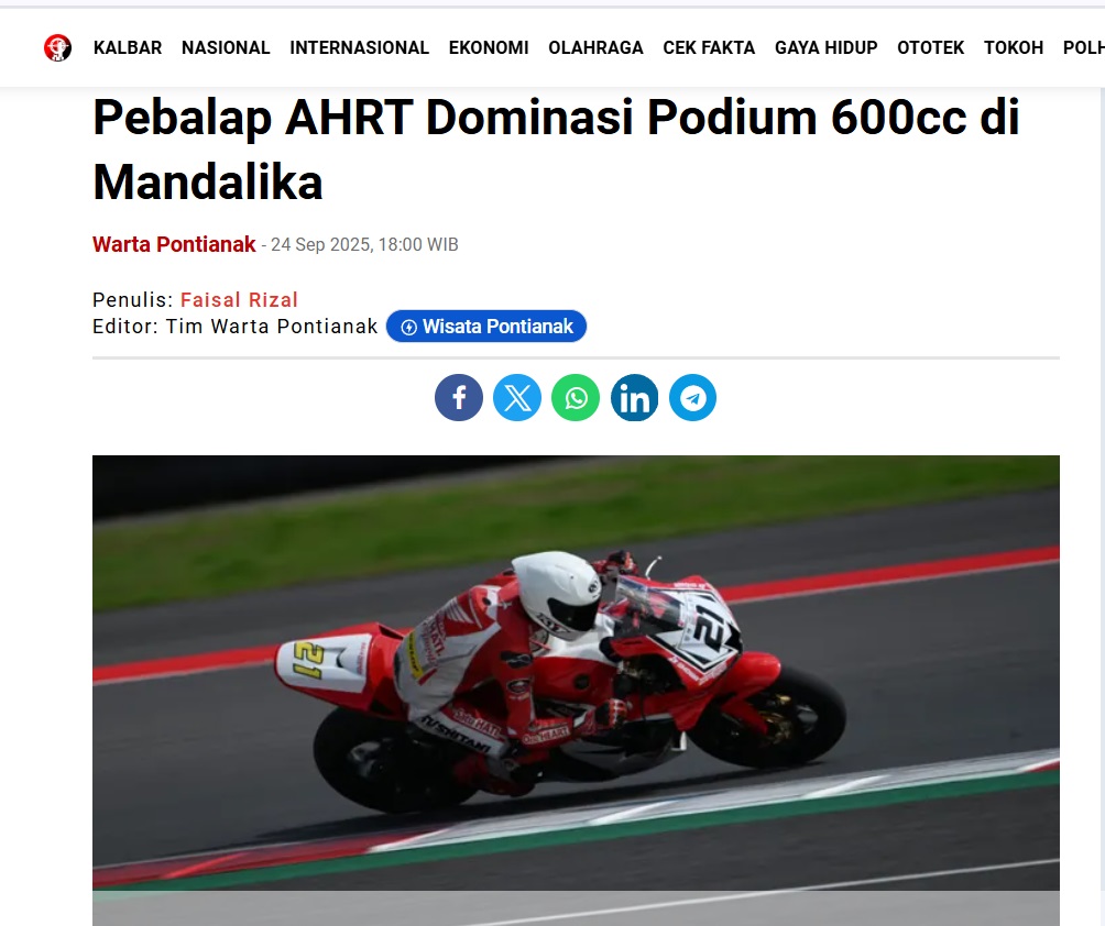 Pebalap AHRT Dominasi Podium 600cc di Mandalika by Faisal Rizal 24 September 2025 in Silahkan kunjungi https://wartapontianak.pikiran-rakyat.com/olahraga/pr-1179668400/pebalap-ahrt-dominasi-podium-600cc-di-mandalika. You Might Like Regional Public Launching New ADV160 The SUV Pride Grand Launching New PCX 160 Truly Exceptional! Tetap hati-hati ya bro sist berkendara saat hujan.