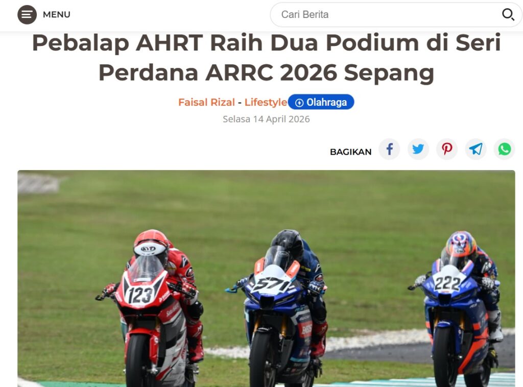 Pebalap AHRT Raih Dua Podium di Seri Perdana ARRC 2026 Sepang by Dodi Dodi 14 April 2026 in Silahkan kunjungi https://harianberkat.com/2026/04/14/pebalap-ahrt-raih-dua-podium-di-seri-perdana-arrc-2026-sepang/. You Might Like Regional Public Launching New ADV160 The SUV Pride Grand Launching New PCX 160 Truly Exceptional! Tetap hati-hati ya bro sist berkendara saat hujan.