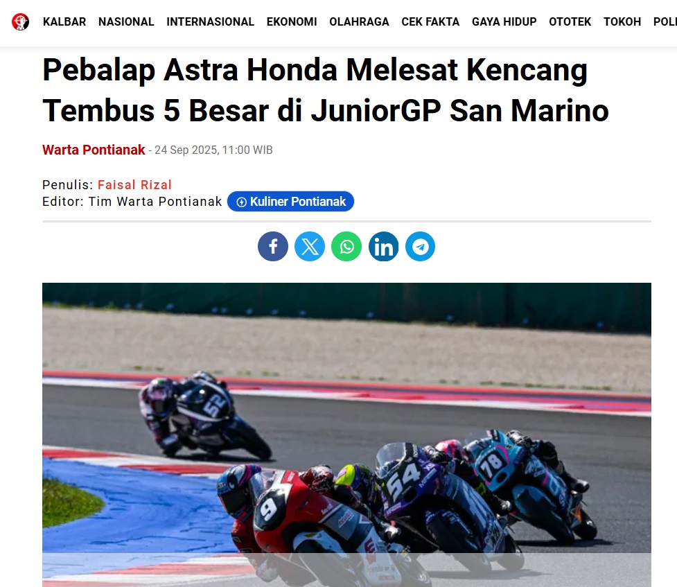 Pebalap Astra Honda Melesat Kencang Tembus 5 Besar di JuniorGP San Marino by Faisal Rizal 24 September 2025 in Silahkan kunjungi https://wartapontianak.pikiran-rakyat.com/olahraga/pr-1179668471/pebalap-astra-honda-melesat-kencang-tembus-5-besar-di-juniorgp-san-marino. You Might Like Regional Public Launching New ADV160 The SUV Pride Grand Launching New PCX 160 Truly Exceptional! Tetap hati-hati ya bro sist berkendara saat hujan.
