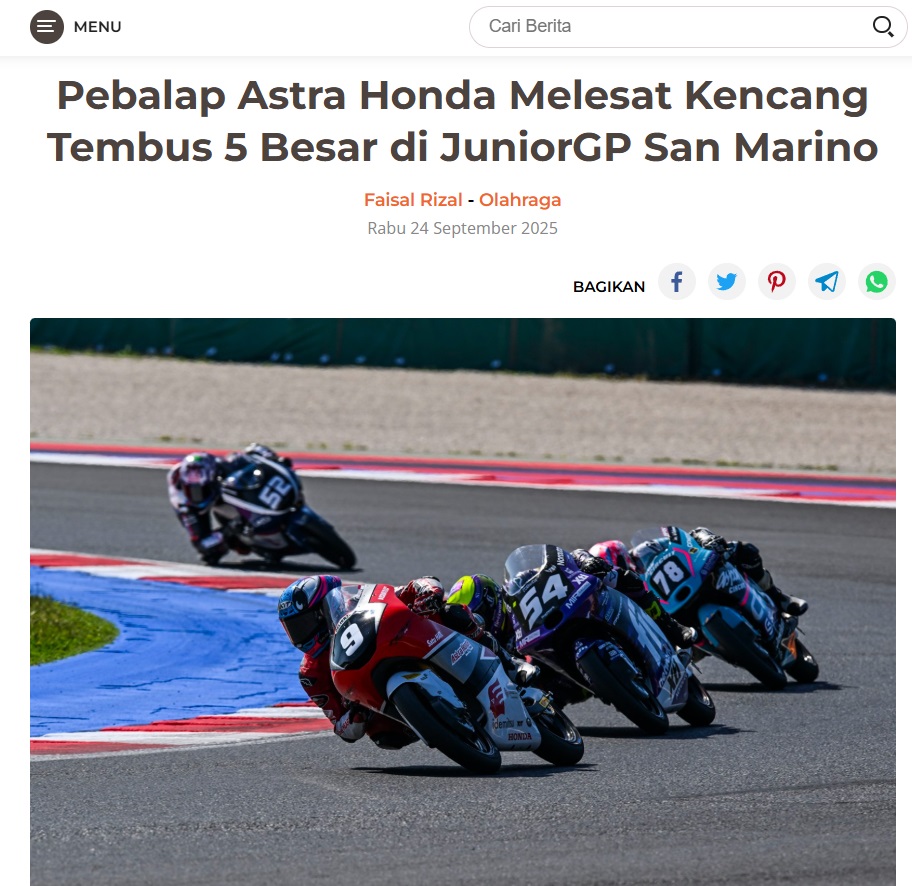 Pebalap Astra Honda Melesat Kencang Tembus 5 Besar di JuniorGP San Marino by Dodi Dodi 24 September 2025 in Silahkan kunjungi https://harianberkat.com/2025/09/24/pebalap-astra-honda-melesat-kencang-tembus-5-besar-di-juniorgp-san-marino/. You Might Like Regional Public Launching New ADV160 The SUV Pride Grand Launching New PCX 160 Truly Exceptional! Tetap hati-hati ya bro sist berkendara saat hujan.