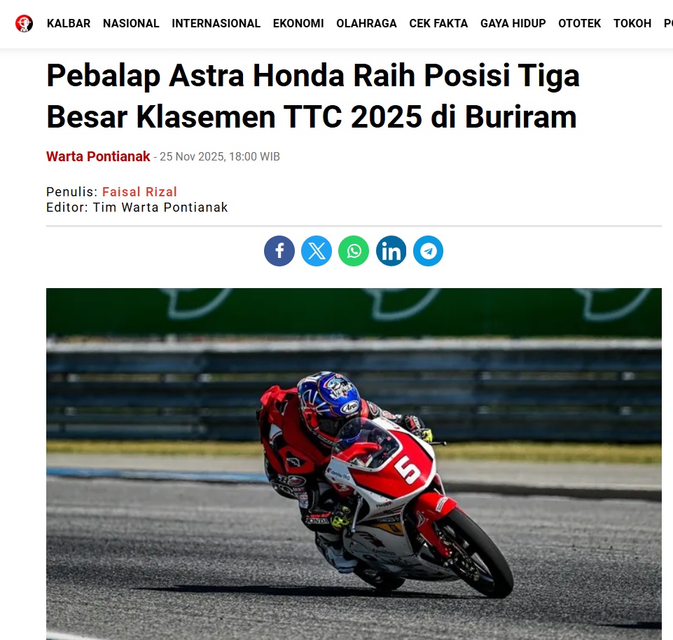 Pebalap Astra Honda Raih Posisi Tiga Besar Klasemen TTC 2025 di Buriram by Faisal Rizal 25 November 2025 in Silahkan kunjungi https://wartapontianak.pikiran-rakyat.com/olahraga/pr-1179815525/pebalap-astra-honda-raih-posisi-tiga-besar-klasemen-ttc-2025-di-buriram. You Might Like Regional Public Launching New ADV160 The SUV Pride Grand Launching New PCX 160 Truly Exceptional! Tetap hati-hati ya bro sist berkendara saat hujan.