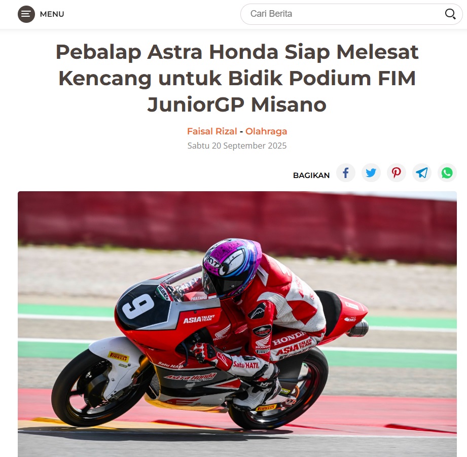 Pebalap Astra Honda Siap Melesat Kencang untuk Bidik Podium FIM JuniorGP Misano by Dodi Dodi 20 September 2025 in Silahkan kunjungi https://harianberkat.com/2025/09/20/pebalap-astra-honda-siap-melesat-kencang-untuk-bidik-podium-fim-juniorgp-misano/. You Might Like Regional Public Launching New ADV160 The SUV Pride Grand Launching New PCX 160 Truly Exceptional! Tetap hati-hati ya bro sist berkendara saat hujan.