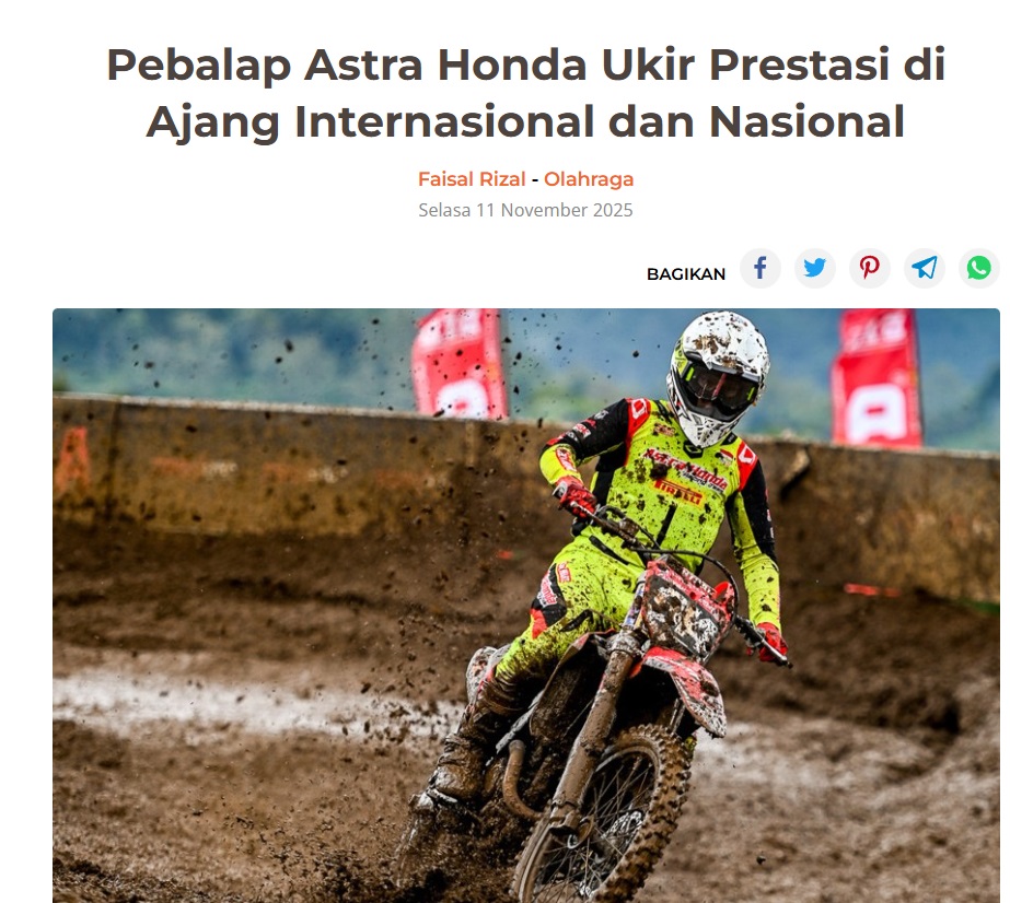 Pebalap Astra Honda Ukir Prestasi di Ajang Internasional dan Nasional by Dodi Dodi 11 November 2025 in Silahkan kunjungi https://harianberkat.com/2025/11/11/pebalap-astra-honda-ukir-prestasi-di-ajang-internasional-dan-nasional/. You Might Like Regional Public Launching New ADV160 The SUV Pride Grand Launching New PCX 160 Truly Exceptional! Tetap hati-hati ya bro sist berkendara saat hujan.