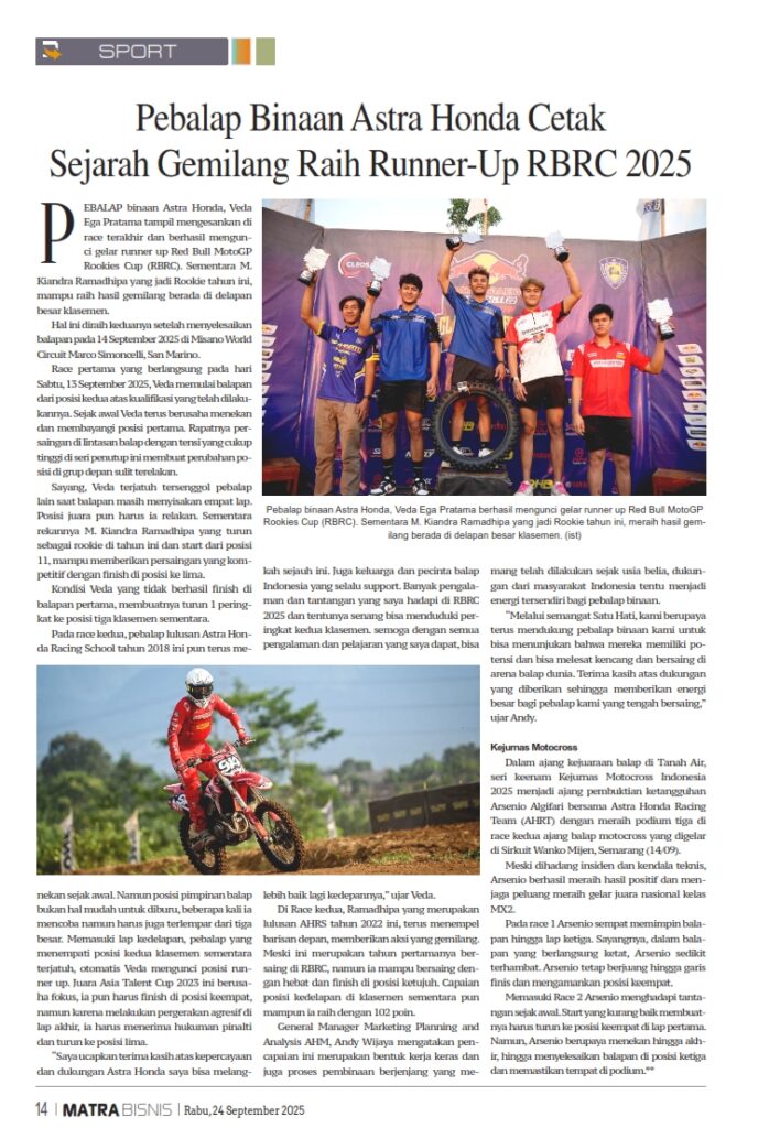Pebalap Binaan Astra Honda Cetak Sejarah Gemilang Raih Runner -Up RBRC 2025 by Sri Yuliantiningsih 24 September 2025 in Silahkan buka . You Might Like Regional Public Launching New ADV160 The SUV Pride Grand Launching New PCX 160 Truly Exceptional! Tetap hati-hati ya bro sist berkendara saat hujan.