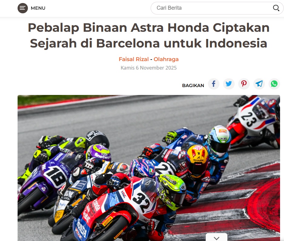 Pebalap Binaan Astra Honda Ciptakan Sejarah di Barcelona untuk Indonesia by Dodi Dodi 6 November 2025 in Silahkan kunjungi https://harianberkat.com/2025/11/06/pebalap-binaan-astra-honda-ciptakan-sejarah-di-barcelona-untuk-indonesia/. You Might Like Regional Public Launching New ADV160 The SUV Pride Grand Launching New PCX 160 Truly Exceptional! Tetap hati-hati ya bro sist berkendara saat hujan.