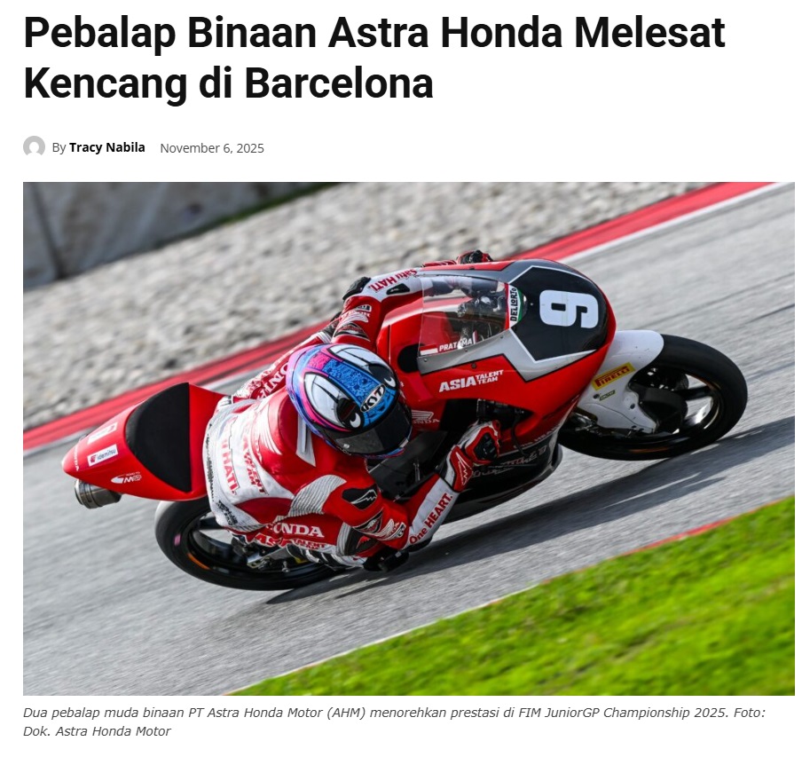 Pebalap Binaan Astra Honda Melesat Kencang di Barcelona by Leo Prima 6 November 2025 in Silahkan kunjungi https://pontianaktoday.id/pebalap-binaan-astra-honda-melesat-kencang-di-barcelona/. You Might Like Regional Public Launching New ADV160 The SUV Pride Grand Launching New PCX 160 Truly Exceptional! Tetap hati-hati ya bro sist berkendara saat hujan.
