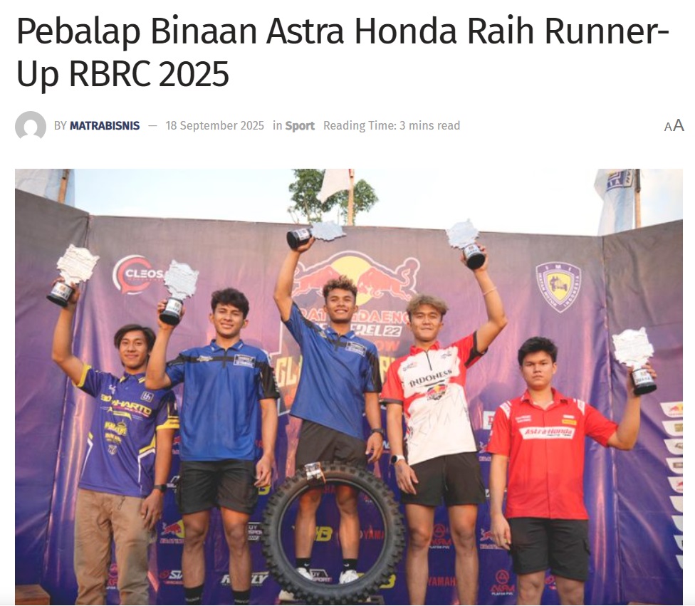 Pebalap Binaan Astra Honda Raih Runner-Up RBRC 2025 by Sri Yuliantiningsih 18 September 2025 in Silahkan kunjungi https://matrabisnis.id/2025/09/18/pebalap-binaan-astra-honda-raih-runner-up-rbrc-2025/. You Might Like Regional Public Launching New ADV160 The SUV Pride Grand Launching New PCX 160 Truly Exceptional! Tetap hati-hati ya bro sist berkendara saat hujan.