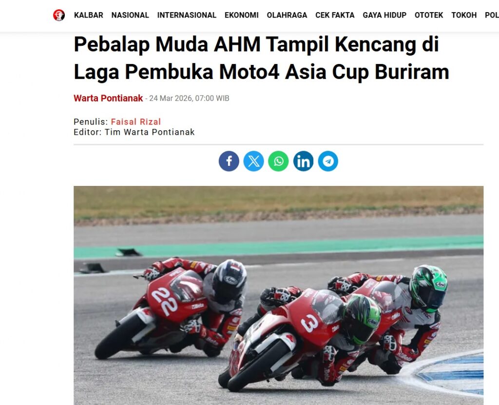 Pebalap Muda AHM Tampil Kencang di Laga Pembuka Moto4 Asia Cup Buriram by Faisal Rizal 24 Maret 2026 in Silahkan kunjungi https://wartapontianak.pikiran-rakyat.com/olahraga/pr-11710094478/pebalap-muda-ahm-tampil-kencang-di-laga-pembuka-moto4-asia-cup-buriram. You Might Like Regional Public Launching New ADV160 The SUV Pride Grand Launching New PCX 160 Truly Exceptional! Tetap hati-hati ya bro sist berkendara saat hujan.