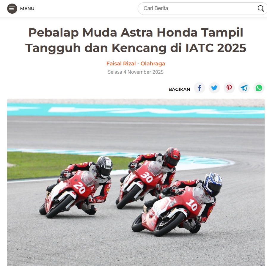 Pebalap Muda Astra Honda Tampil Tangguh dan Kencang di IATC 2025 by Dodi Dodi 4 November 2025 in Silahkan kunjungi https://harianberkat.com/2025/11/04/pebalap-muda-astra-honda-tampil-tangguh-dan-kencang-di-iatc-2025/. You Might Like Regional Public Launching New ADV160 The SUV Pride Grand Launching New PCX 160 Truly Exceptional! Tetap hati-hati ya bro sist berkendara saat hujan.
