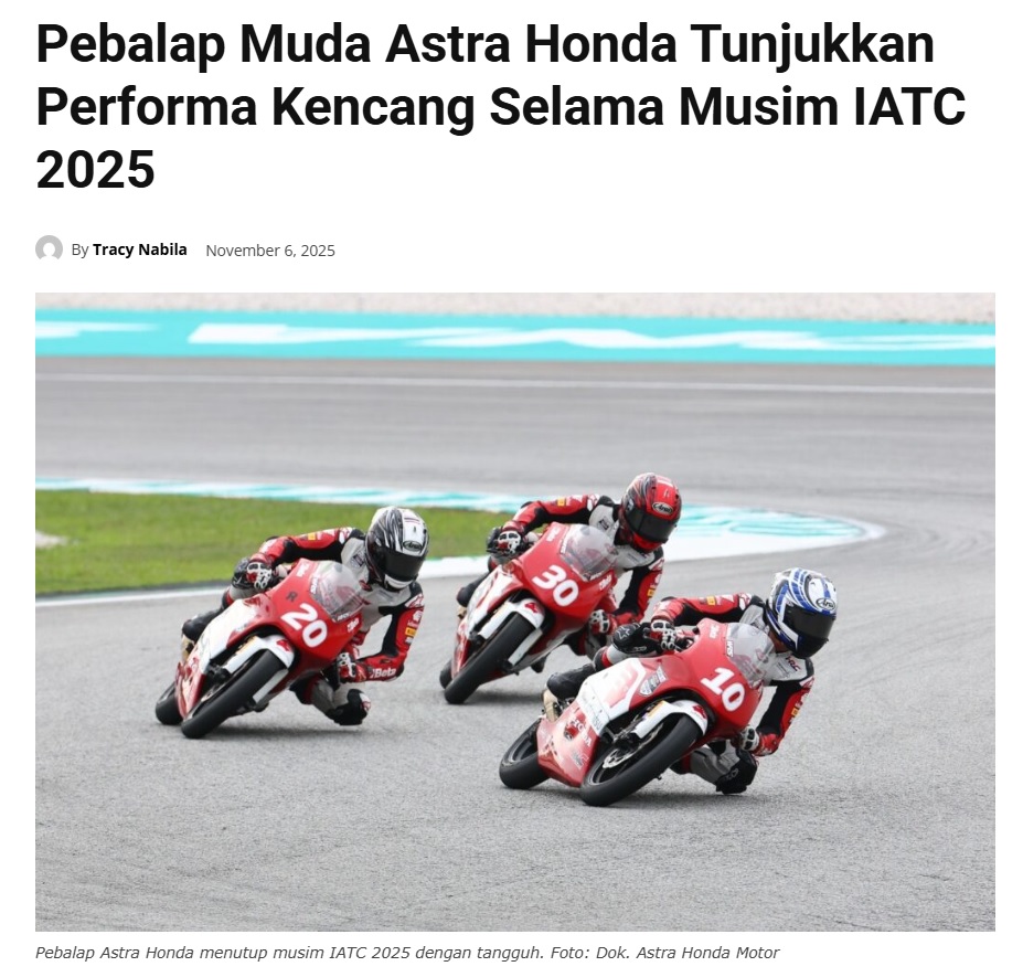 Pebalap Muda Astra Honda Tunjukkan Performa Kencang Selama Musim IATC 2025 by Leo Prima 6 November 2025 in Silahkan kunjungi https://pontianaktoday.id/pebalap-muda-astra-honda-tunjukkan-performa-kencang-selama-musim-iatc-2025/. You Might Like Regional Public Launching New ADV160 The SUV Pride Grand Launching New PCX 160 Truly Exceptional! Tetap hati-hati ya bro sist berkendara saat hujan.