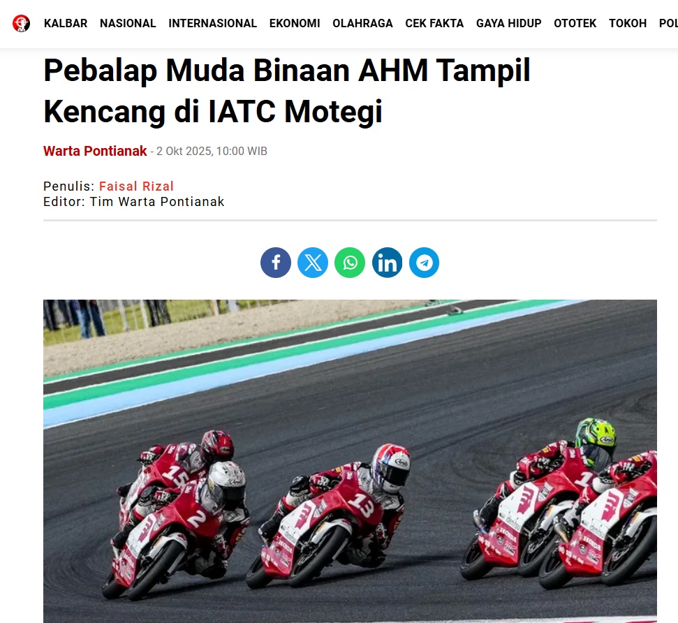 Pebalap Muda Binaan AHM Tampil Kencang di IATC Motegi by Faisal Rizal 2 Oktober 2025 in Silahkan kunjungi https://wartapontianak.pikiran-rakyat.com/olahraga/pr-1179688782/pebalap-muda-binaan-ahm-tampil-kencang-di-iatc-motegi. You Might Like Regional Public Launching New ADV160 The SUV Pride Grand Launching New PCX 160 Truly Exceptional! Tetap hati-hati ya bro sist berkendara saat hujan.