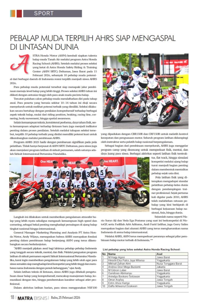 PEBALAP MUDA TERPILIH AHRS SIAP MENGASPAL DI LINTASAN DUNIA by Sri Yuliantiningsih 25 Februari 2026 in Silahkan buka . You Might Like Regional Public Launching New ADV160 The SUV Pride Grand Launching New PCX 160 Truly Exceptional! Tetap hati-hati ya bro sist berkendara saat hujan.
