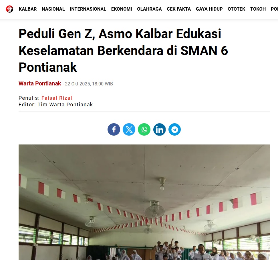 Peduli Gen Z, Asmo Kalbar Edukasi Keselamatan Berkendara di SMAN 6 Pontianak by Faisal Rizal 22 Oktober 2025 in Silahkan kunjungi https://wartapontianak.pikiran-rakyat.com/gaya-hidup/pr-1179735050/peduli-gen-z-asmo-kalbar-edukasi-keselamatan-berkendara-di-sman-6-pontianak. You Might Like Regional Public Launching New ADV160 The SUV Pride Grand Launching New PCX 160 Truly Exceptional! Tetap hati-hati ya bro sist berkendara saat hujan.