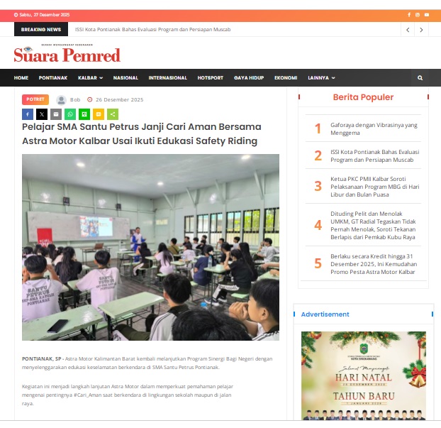 Pelajar SMA Santu Petrus Janji Cari Aman Bersama Astra Motor Kalbar Usai Ikuti Edukasi Safety Riding by masmul 26 Desember 2025 in Silahkan kunjungi https://www.suarapemredkalbar.com/read/potret/26122025/pelajar-sma-santu-petrus-janji-cari-aman-bersama-astra-motor-kalbar-usai-ikuti-edukasi-safety-riding. You Might Like Regional Public Launching New ADV160 The SUV Pride Grand Launching New PCX 160 Truly Exceptional! Tetap hati-hati ya bro sist berkendara saat hujan.