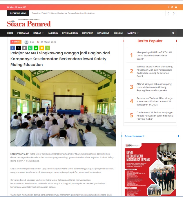 Pelajar SMAN 1 Singkawang Bangga jadi Bagian dari Kampanye Keselamatan Berkendara lewat Safety Riding Education by masmul 21 Maret 2025 in Silahkan kunjungi https://www.suarapemredkalbar.com/read/potret/21032025/pelajar-sman-1-singkawang-bangga-jadi-bagian-dari-kampanye-keselamatan-berkendara-lewat-safety-riding-education. You Might Like Regional Public Launching New ADV160 The SUV Pride Grand Launching New PCX 160 Truly Exceptional! Tetap hati-hati ya bro sist berkendara saat hujan.