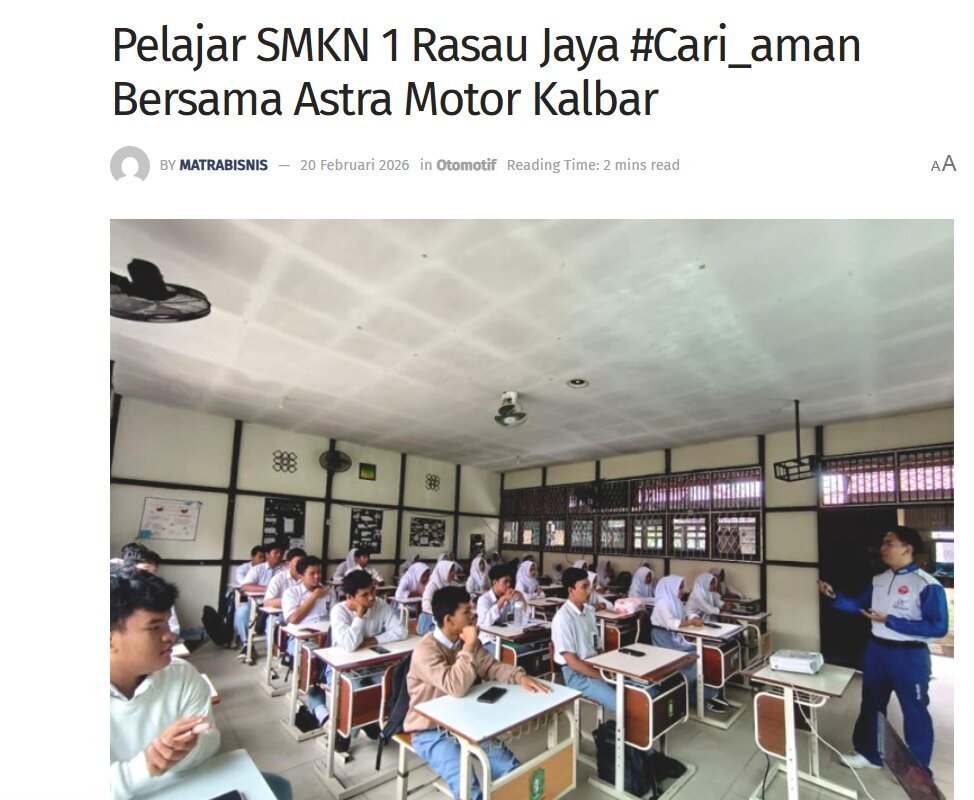 Pelajar SMKN 1 Rasau Jaya #Cari_aman Bersama Astra Motor Kalbar by Sri Yuliantiningsih 20 Februari 2026 in Silahkan kunjungi https://matrabisnis.id/2026/02/20/pelajar-smkn-1-rasau-jaya-cari_aman-bersama-astra-motor-kalbar/. You Might Like Regional Public Launching New ADV160 The SUV Pride Grand Launching New PCX 160 Truly Exceptional! Tetap hati-hati ya bro sist berkendara saat hujan.