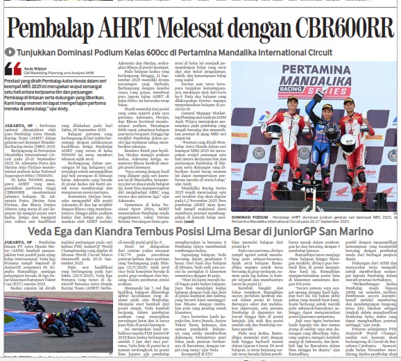 Pembalap AHRT Melesat dengan CBR600RR, Tunjukkan Dominasi Podium Kelas 600cc di Pertamina Mandalika International Circuit by masmul 25 September 2025 in Silahkan buka . You Might Like Regional Public Launching New ADV160 The SUV Pride Grand Launching New PCX 160 Truly Exceptional! Tetap hati-hati ya bro sist berkendara saat hujan.