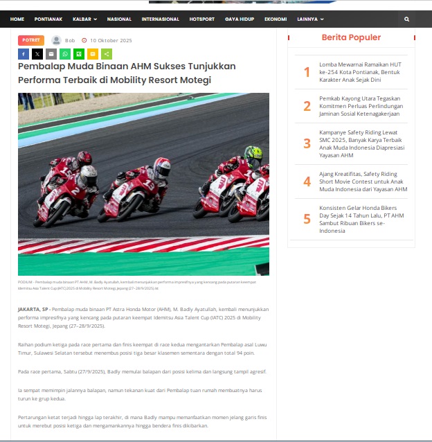 Pembalap Muda Binaan AHM Sukses Tunjukkan Performa Terbaik di Mobility Resort Motegi by masmul 10 Oktober 2025 in Silahkan kunjungi https://www.suarapemredkalbar.com/read/potret/10102025/pembalap-muda-binaan-ahm-sukses-tunjukkan-performa-terbaik-di-mobility-resort-motegi. You Might Like Regional Public Launching New ADV160 The SUV Pride Grand Launching New PCX 160 Truly Exceptional! Tetap hati-hati ya bro sist berkendara saat hujan.