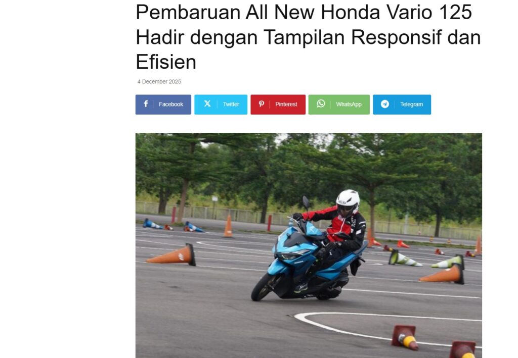 Pembaruan All New Honda Vario 125 Hadir dengan Tampilan Responsif dan Efisien by Nova Sari 4 Desember 2025 in Silahkan kunjungi https://equator.co.id/pembaruan-all-new-honda-vario-125-hadir-dengan-tampilan-responsif-dan-efisien/. You Might Like Regional Public Launching New ADV160 The SUV Pride Grand Launching New PCX 160 Truly Exceptional! Tetap hati-hati ya bro sist berkendara saat hujan.