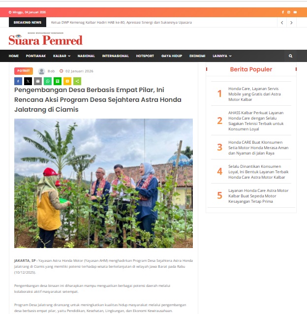 Pengembangan Desa Berbasis Empat Pilar, Ini Rencana Aksi Program Desa Sejahtera Astra Honda Jalatrang di Ciamis by masmul 2 Januari 2026 in Silahkan kunjungi https://www.suarapemredkalbar.com/read/potret/02012026/pengembangan-desa-berbasis-empat-pilar-ini-rencana-aksi-program-desa-sejahtera-astra-honda-jalatrang-di-ciamis. You Might Like Regional Public Launching New ADV160 The SUV Pride Grand Launching New PCX 160 Truly Exceptional! Tetap hati-hati ya bro sist berkendara saat hujan.