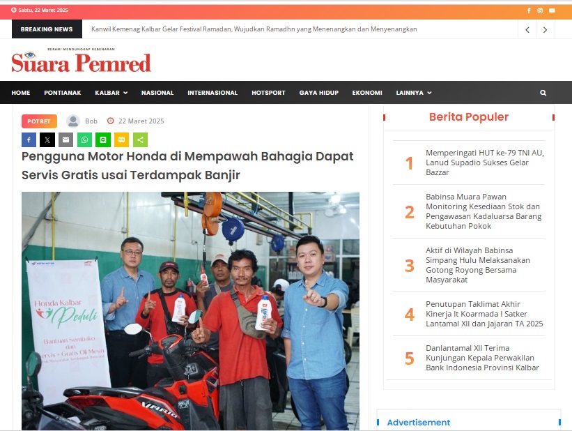 Pengguna Motor Honda di Mempawah Bahagia Dapat Servis Gratis usai Terdampak Banjir by masmul 22 Maret 2025 in Silahkan kunjungi https://www.suarapemredkalbar.com/read/potret/22032025/pengguna-motor-honda-di-mempawah-bahagia-dapat-servis-gratis-usai-terdampak-banjir. You Might Like Regional Public Launching New ADV160 The SUV Pride Grand Launching New PCX 160 Truly Exceptional! Tetap hati-hati ya bro sist berkendara saat hujan.