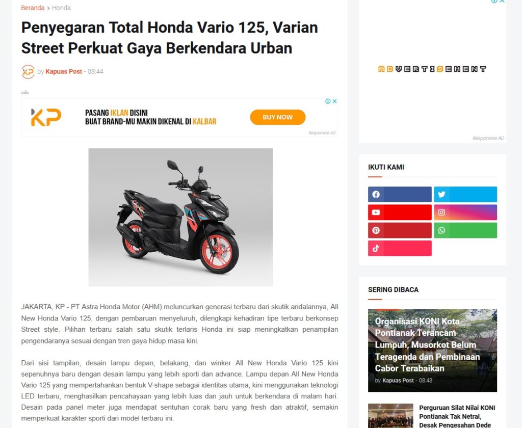 Penyegaran Total Honda Vario 125, Varian Street Perkuat Gaya Berkendara Urban by Muhammad Arif 15 Desember 2025 in Silahkan kunjungi https://www.kapuaspost.web.id/2025/12/penyegaran-total-honda-vario-125-varian.html. Tags: astra Astra Motor kalbar Astra Motor Pontianak astramotor honda kalbar pontianak sepeda motor You Might Like Regional Public Launching New ADV160 The SUV Pride Grand Launching New PCX 160 Truly Exceptional! Tetap hati-hati ya bro sist berkendara saat hujan.