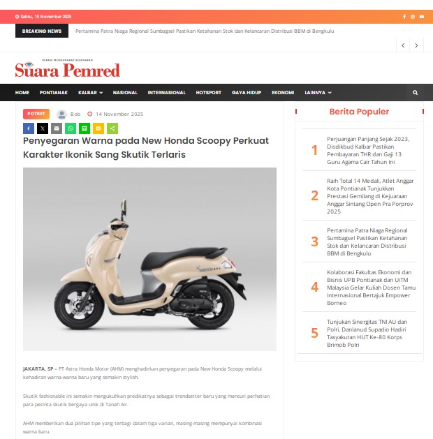 Penyegaran Warna pada New Honda Scoopy Perkuat Karakter Ikonik Sang Skutik Terlaris by masmul 14 November 2025 in Silahkan kunjungi https://www.suarapemredkalbar.com/read/potret/14112025/penyegaran-warna-pada-new-honda-scoopy-perkuat-karakter-ikonik-sang-skutik-terlaris. You Might Like Regional Public Launching New ADV160 The SUV Pride Grand Launching New PCX 160 Truly Exceptional! Tetap hati-hati ya bro sist berkendara saat hujan.