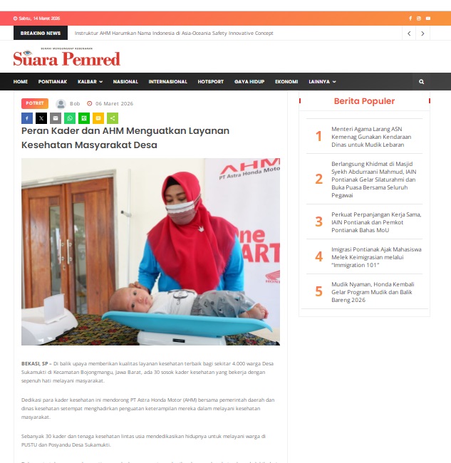 Peran Kader dan AHM Menguatkan Layanan Kesehatan Masyarakat Desa by masmul 6 Maret 2026 in Silahkan kunjungi https://www.suarapemredkalbar.com/read/potret/06032026/peran-kader-dan-ahm-menguatkan-layanan-kesehatan-masyarakat-desa. You Might Like Regional Public Launching New ADV160 The SUV Pride Grand Launching New PCX 160 Truly Exceptional! Tetap hati-hati ya bro sist berkendara saat hujan.