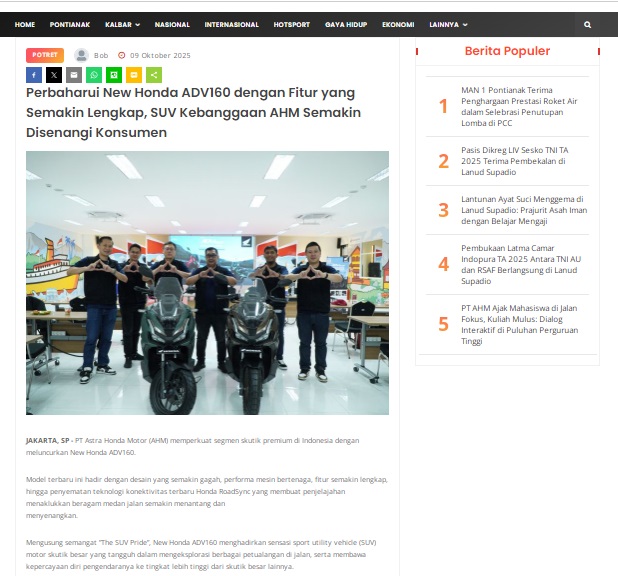 Perbaharui New Honda ADV160 dengan Fitur yang Semakin Lengkap, SUV Kebanggaan AHM Semakin Disenangi Konsumen by masmul 9 Oktober 2025 in Silahkan kunjungi https://www.suarapemredkalbar.com/read/potret/09102025/perbaharui-new-honda-adv160-dengan-fitur-yang-semakin-lengkap-suv-kebanggaan-ahm-semakin-disenangi-konsumen. You Might Like Regional Public Launching New ADV160 The SUV Pride Grand Launching New PCX 160 Truly Exceptional! Tetap hati-hati ya bro sist berkendara saat hujan.