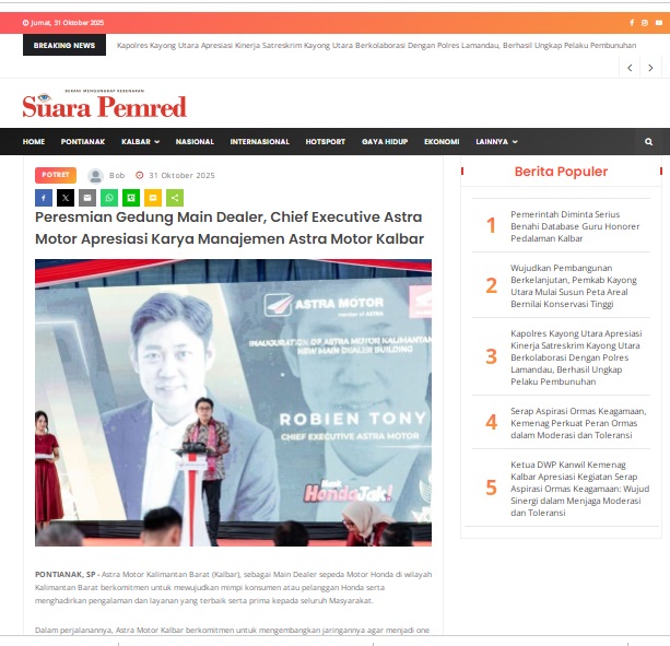 Peresmian Gedung Main Dealer, Chief Executive Astra Motor Apresiasi Karya Manajemen Astra Motor Kalbar by masmul 31 Oktober 2025 in Silahkan kunjungi https://www.suarapemredkalbar.com/read/potret/31102025/peresmian-gedung-main-dealer-chief-executive-astra-motor-apresiasi-karya-manajemen-astra-motor-kalbar. You Might Like Regional Public Launching New ADV160 The SUV Pride Grand Launching New PCX 160 Truly Exceptional! Tetap hati-hati ya bro sist berkendara saat hujan.