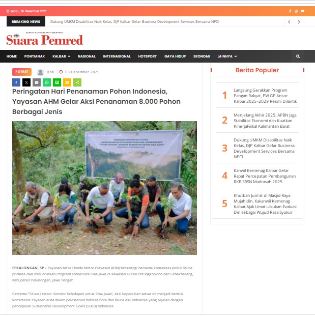 Peringatan Hari Penanaman Pohon Indonesia, Yayasan AHM Gelar Aksi Penanaman 8.000 Pohon Berbagai Jenis by masmul 3 Desember 2025 in Silahkan kunjungi https://www.suarapemredkalbar.com/read/potret/03122025/peringatan-hari-penanaman-pohon-indonesia-yayasan-ahm-gelar-aksi-penanaman-8000-pohon-berbagai-jenis. You Might Like Regional Public Launching New ADV160 The SUV Pride Grand Launching New PCX 160 Truly Exceptional! Tetap hati-hati ya bro sist berkendara saat hujan.