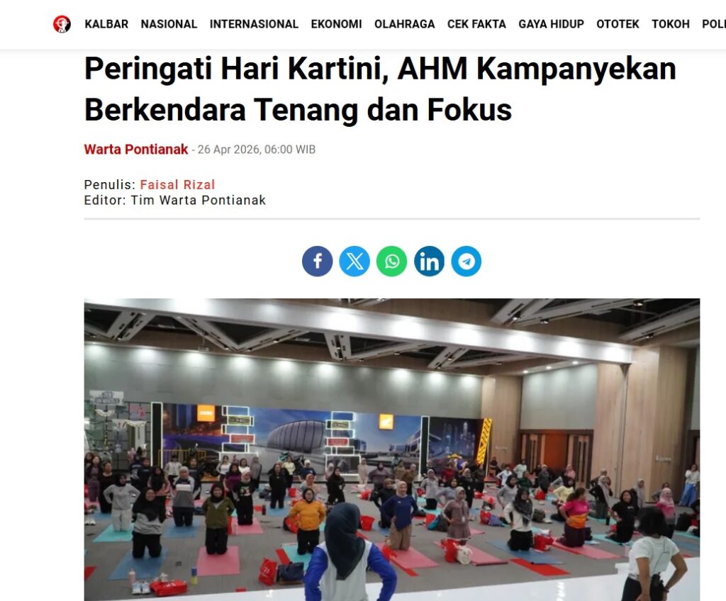 Peringati Hari Kartini, AHM Kampanyekan Berkendara Tenang dan Fokus by Faisal Rizal 26 April 2026 in Silahkan kunjungi https://wartapontianak.pikiran-rakyat.com/gaya-hidup/pr-11710166194/peringati-hari-kartini-ahm-kampanyekan-berkendara-tenang-dan-fokus. You Might Like Regional Public Launching New ADV160 The SUV Pride Grand Launching New PCX 160 Truly Exceptional! Tetap hati-hati ya bro sist berkendara saat hujan.