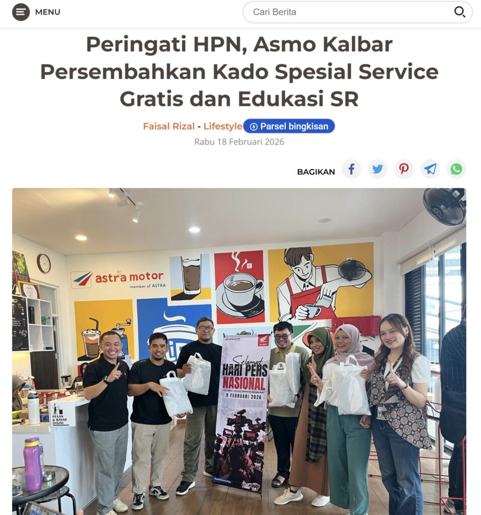Peringati HPN, Asmo Kalbar Persembahkan Kado Spesial Service Gratis dan Edukasi SR by Dodi Dodi 18 Februari 2026 in Silahkan kunjungi https://harianberkat.com/2026/02/18/peringati-hpn-asmo-kalbar-persembahkan-kado-spesial-service-gratis-dan-edukasi-sr/. You Might Like Regional Public Launching New ADV160 The SUV Pride Grand Launching New PCX 160 Truly Exceptional! Tetap hati-hati ya bro sist berkendara saat hujan.